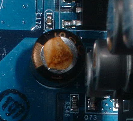 Sta succedendo a 2 condensatori (la scheda ne avrà circa una decina). Praticamente sulla parte superiore si è formata una specie di crosticina color ruggine e il condensatore sembra gonfio...